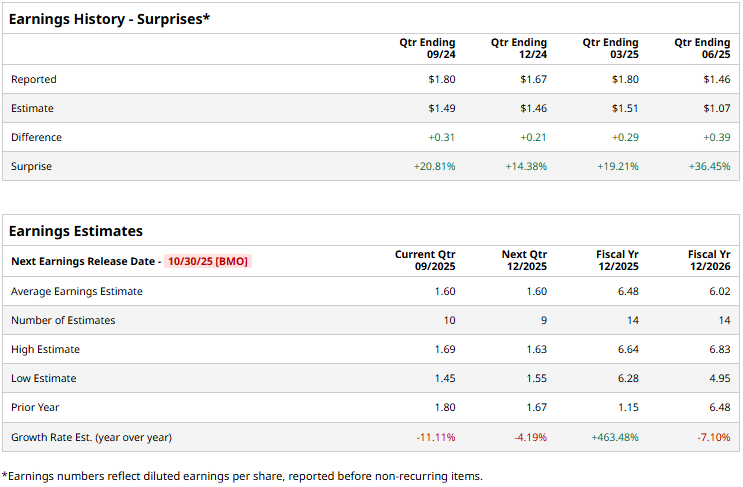 The biopharma giant is set to unveil its third-quarter results before the market opens on Thursday, Oct. 30. Ahead of the event, analysts expect BMY to deliver a profit of $1.60 per share, down 11.1% from $1.80 per share reported in the year-ago quarter. On a positive note, the company has a solid earnings surprise history and has surpassed the Street’s bottom-line estimates in each of the past four quarters.